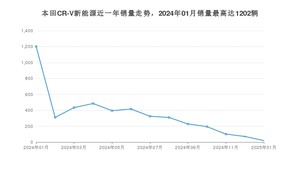 2025年1月,本田CR-V新能源销量为19辆,同比下降98.42%,环比下降73.24%。2024年01月-2025年01月份,本田CR-V新能源销量为4492辆,同比下降55.08%。
