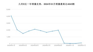 2025年1月,几何E销量为152辆,同比下降96.24%,环比增长192.31%。2024年01月-2025年01月份,几何E销量为19268辆,同比下降46.74%。
