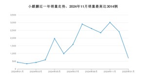 2025年1月,小麒麟销量为700辆,同比增长60.18%,环比下降70.88%。2024年01月-2025年01月份,小麒麟销量为20328辆,同比增长501.95%。