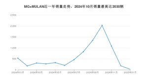 2025年1月,MG MULAN销量为25辆,同比下降95.29%,环比下降86.26%。2024年01月-2025年01月份,MG MULAN销量为7777辆,同比下降33.63%。