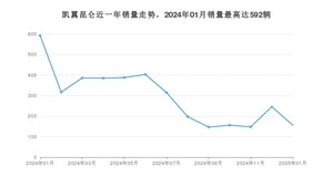 2025年1月,凯翼昆仑销量为156辆,同比下降73.65%,环比下降36.59%。2024年01月-2025年01月份,凯翼昆仑销量为3837辆,同比下降58.73%。