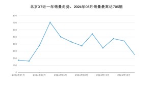 2025年1月,北京X7销量为250辆,同比增长46.2%,环比下降43.57%。2024年01月-2025年01月份,北京X7销量为4775辆,同比下降60.03%。