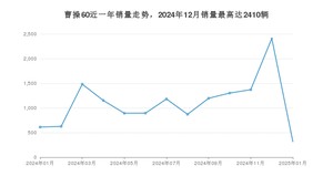 2025年1月,曹操60销量为317辆,同比下降48.2%,环比下降86.85%。2024年01月-2025年01月份,曹操60销量为14308辆,同比增长14.67%。
