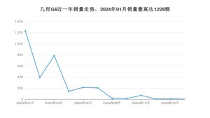 2025年1月,几何G6销量为1辆,同比下降99.92%,环比下降83.33%。2024年01月-2025年01月份,几何G6销量为3073辆,同比下降57.61%。