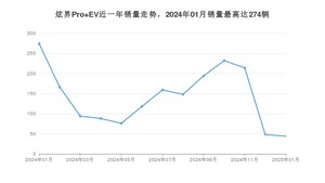 2025年1月,炫界Pro EV销量为44辆,同比下降83.94%,环比下降8.33%。2024年01月-2025年01月份,炫界Pro EV销量为1855辆,同比增长9.89%。