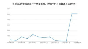 2025年1月,长安之星9新能源销量为511辆,同比增长2%,环比持平。2024年01月-2025年01月份,长安之星9新能源销量为1558辆,同比增长24.04%。