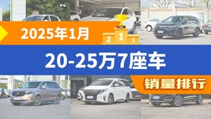 2025年1月20-25万7座车销量排行榜,途观L以16865辆夺冠