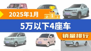 2025年1月5万以下4座车销量排行榜,熊猫mini夺得冠军,第二名差距也太大了
