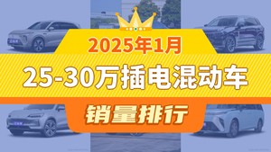 2025年1月25-30万插电混动车销量排行榜,领克09新能源屈居第三