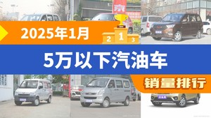 2025年1月5万以下汽油车销量排行榜,五菱宏光V以6712辆夺冠