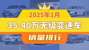 2025年1月35-40万无级变速车销量排行榜,皇冠陆放位居第二,第一名你绝对想不到