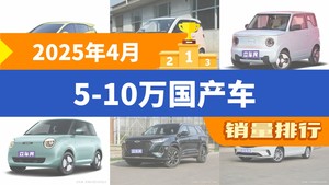 2025年4月5-10万国产车销量排行榜,宏光MINI EV位居第二,第一名你绝对想不到