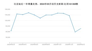 在国内市场上,比亚迪,在2025年2月的销量为77410辆,同比增长18.87%,环比增长33.23%。2024年02月-2025年02月份,比亚迪累计销量为1713629辆,较去年同期下降16.91%。