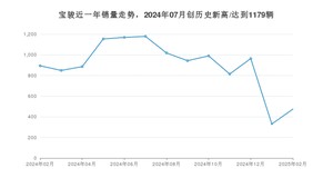 2025年2月,全国汽车总销量为873144辆,宝骏品牌的销量占比为0.05%,在所有汽车企业销量排名中位列第61名。2024年02月-2025年02月份,全国汽车总销量为16883268辆,宝骏品牌的销量占比为0.07%,在所有汽车企业销量排名中位列第68名。