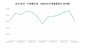 2025年2月,宝马3系销量为9051辆,同比下降8.84%,环比下降35.69%。2024年02月-2025年02月份,宝马3系销量为152617辆,同比增长2%。