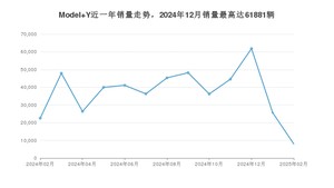2025年2月,Model Y销量为8006辆,同比下降64.48%,环比下降68.84%。2024年02月-2025年02月份,Model Y销量为484097辆,同比下降2.14%。