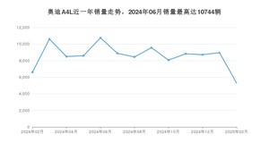 2025年2月,奥迪A4L销量为5298辆,同比下降19.69%,环比下降40.84%。2024年02月-2025年02月份,奥迪A4L销量为111761辆,同比下降23.61%。