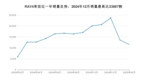 2025年2月,RAV4荣放销量为11584辆,同比增长94.79%,环比下降14.84%。2024年02月-2025年02月份,RAV4荣放销量为201674辆,同比增长2.11%。