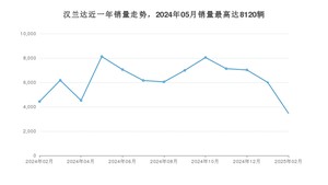 2025年2月,汉兰达销量为3466辆,同比下降21.76%,环比下降42.22%。2024年02月-2025年02月份,汉兰达销量为81145辆,同比增长1.09%。