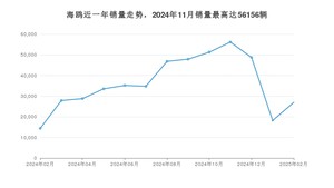 2025年2月,海鸥销量为26958辆,同比增长87.17%,环比增长48.36%。2024年02月-2025年02月份,海鸥销量为470672辆,同比增长67.07%。