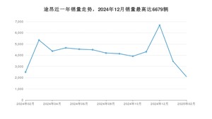 2025年2月,途昂销量为2089辆,同比下降16.31%,环比下降39.62%。2024年02月-2025年02月份,途昂销量为54700辆,同比增长2.06%。