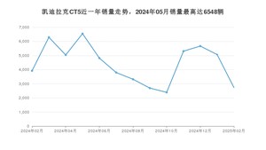 2025年2月,凯迪拉克CT5销量为2731辆,同比下降30.35%,环比下降46.12%。2024年02月-2025年02月份,凯迪拉克CT5销量为57592辆,同比下降36.92%。