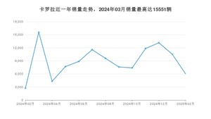 2025年2月,卡罗拉销量为6019辆,同比增长119.43%,环比下降42.84%。2024年02月-2025年02月份,卡罗拉销量为116844辆,同比下降37.66%。