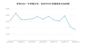 2025年2月,理想L9销量为3300辆,同比下降47.92%,环比下降23.47%。2024年02月-2025年02月份,理想L9销量为84667辆,同比下降30.3%。