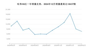 2025年2月,哈弗H6销量为7515辆,同比下降30.72%,环比下降16.7%。2024年02月-2025年02月份,哈弗H6销量为126389辆,同比下降46.64%。