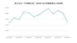 2025年2月,威兰达销量为7101辆,同比下降1.72%,环比下降42.04%。2024年02月-2025年02月份,威兰达销量为144406辆,同比下降7.4%。