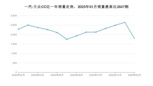 2025年2月,一汽-大众CC销量为1775辆,同比下降22.39%,环比下降32.94%。2024年02月-2025年02月份,一汽-大众CC销量为28684辆,同比下降25.41%。