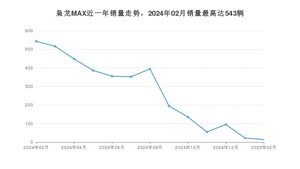 2025年2月,枭龙MAX销量为14辆,同比下降97.42%,环比下降36.36%。2024年02月-2025年02月份,枭龙MAX销量为3510辆,同比下降89.12%。