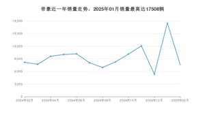 2025年2月,帝豪销量为7538辆,同比下降7.65%,环比下降56.95%。2024年02月-2025年02月份,帝豪销量为121504辆,同比下降22.83%。