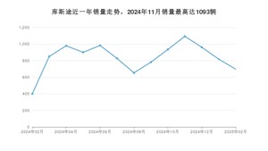 2025年2月,库斯途销量为697辆,同比增长74.25%,环比下降14.79%。2024年02月-2025年02月份,库斯途销量为10879辆,同比下降20.97%。