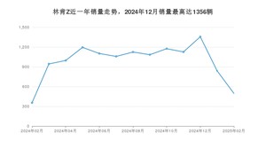 2025年2月,林肯Z销量为496辆,同比增长39.72%,环比下降40.88%。2024年02月-2025年02月份,林肯Z销量为12850辆,同比下降6.03%。
