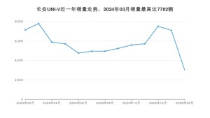 2025年2月,长安UNI-V销量为2988辆,同比下降58.12%,环比下降57.8%。2024年02月-2025年02月份,长安UNI-V销量为75185辆,同比下降43.87%。