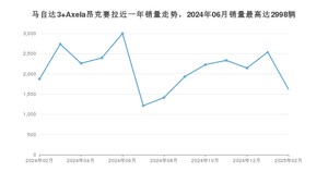 2025年2月,马自达3 Axela昂克赛拉销量为1620辆,同比下降13.51%,环比下降36.2%。2024年02月-2025年02月份,马自达3 Axela昂克赛拉销量为27688辆,同比下降49.77%。