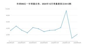 2025年2月,广汽传祺品牌总体销量达到13060辆,其中传祺M6销量达到2149辆,占品牌总销量的16.45%。
