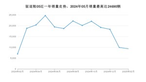 2025年2月,驱逐舰05销量为9347辆,同比增长34.43%,环比下降6.01%。2024年02月-2025年02月份,驱逐舰05销量为230124辆,同比增长144.03%。