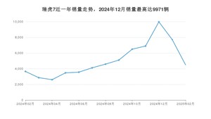 2025年2月,瑞虎7销量为4485辆,同比增长22.81%,环比下降41.84%。2024年02月-2025年02月份,瑞虎7销量为65475辆,同比增长11.29%。