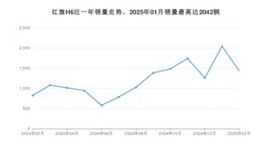2025年2月,红旗H6销量为1433辆,同比增长74.12%,环比下降29.82%。2024年02月-2025年02月份,红旗H6销量为15584辆,同比增长34.95%。
