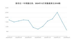 2025年2月,影豹销量为618辆,同比下降63.94%,环比下降60.03%。2024年02月-2025年02月份,影豹销量为19034辆,同比下降56.03%。