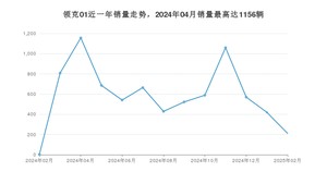 2025年2月,领克01销量为211辆,同比增长6%,环比下降49.64%。2024年02月-2025年02月份,领克01销量为7657辆,同比下降48.65%。