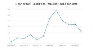 2025年2月,马自达CX-30销量为200辆,同比增长426.32%,环比下降41%。2024年02月-2025年02月份,马自达CX-30销量为2895辆,同比增长19.14%。