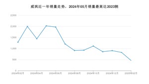 2025年2月,威飒销量为459辆,同比下降64.31%,环比下降44.16%。2024年02月-2025年02月份,威飒销量为15903辆,同比下降48.61%。