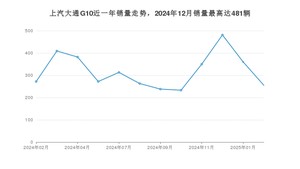 2025年2月,上汽大通G10销量为255辆,同比下降6.25%,环比下降29.17%。2024年02月-2025年02月份,上汽大通G10销量为3828辆,同比下降60.39%。