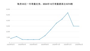 2025年2月,瑞虎3X销量为2984辆,同比增长277.72%,环比下降0.53%。2024年02月-2025年02月份,瑞虎3X销量为27087辆,同比增长41.98%。