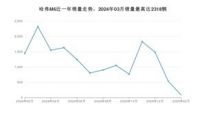 2025年2月,哈弗M6销量为84辆,同比下降94.19%,环比下降84.36%。2024年02月-2025年02月份,哈弗M6销量为15637辆,同比下降69.45%。