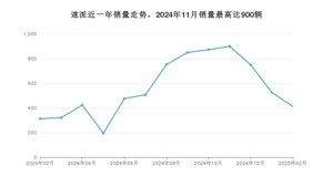 2025年2月,速派销量为412辆,同比增长31.63%,环比下降21.67%。2024年02月-2025年02月份,速派销量为7299辆,同比增长130.33%。