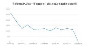 2025年2月,长安CS35 PLUS销量为56辆,同比下降97.87%,环比下降95.07%。2024年02月-2025年02月份,长安CS35 PLUS销量为16717辆,同比下降63.08%。